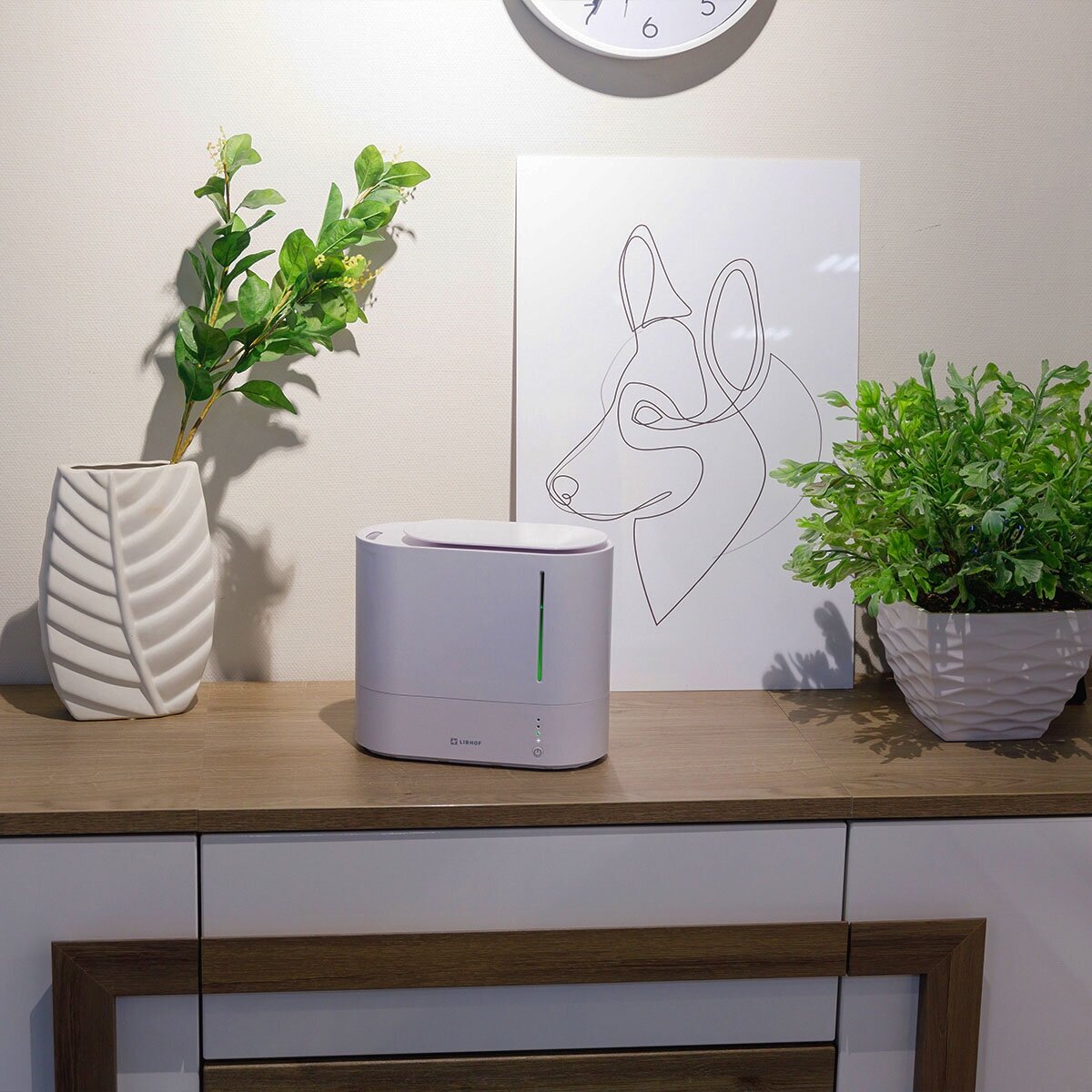 Type: air humidifier, room area: 20 m², humidifier type: ultrasonic, water tank volume: 2.20 l, installation: desktop, indication: humidity, control: electronic, control from smartphone, consumption