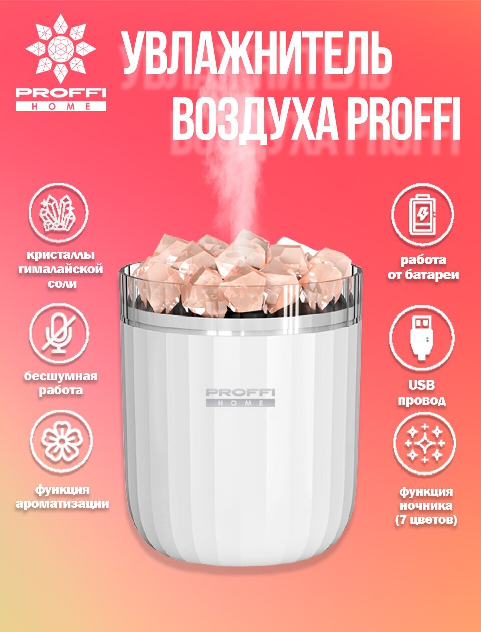 Air humidifier for apartment with Himalayan salt PROFFI HOME PH11052, ultrasonic