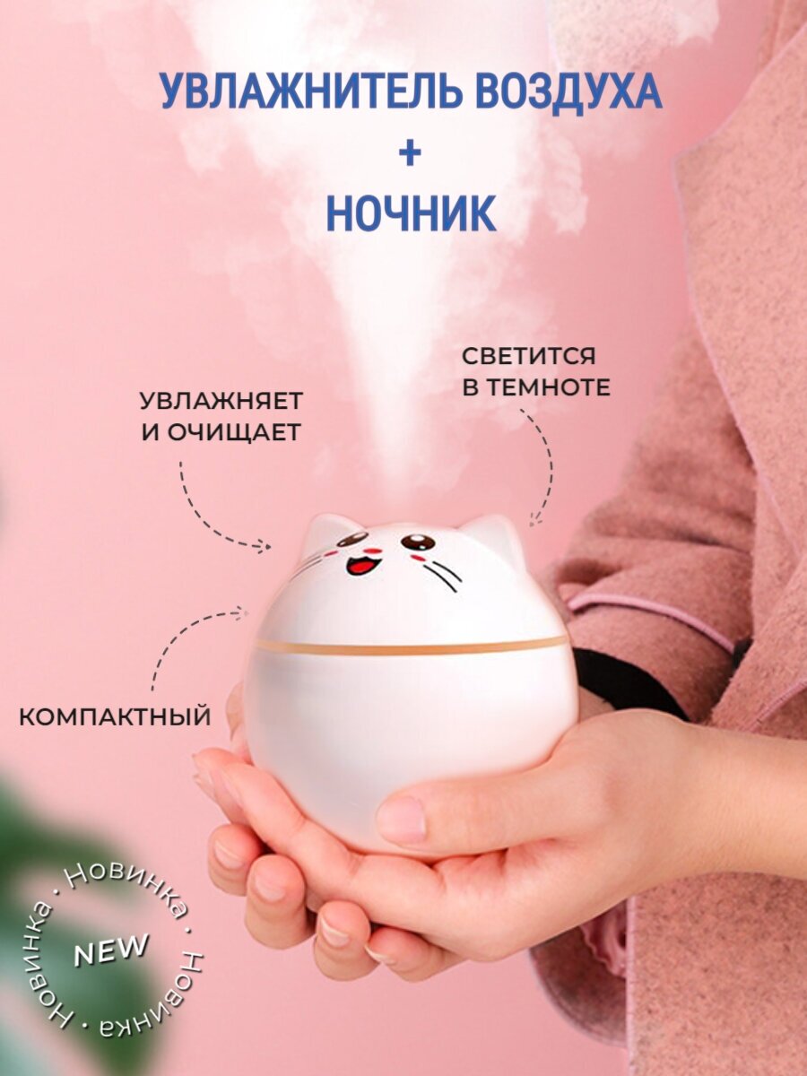 Children's air humidifier + night light with LED backlight, white cat, 300 ml, USB