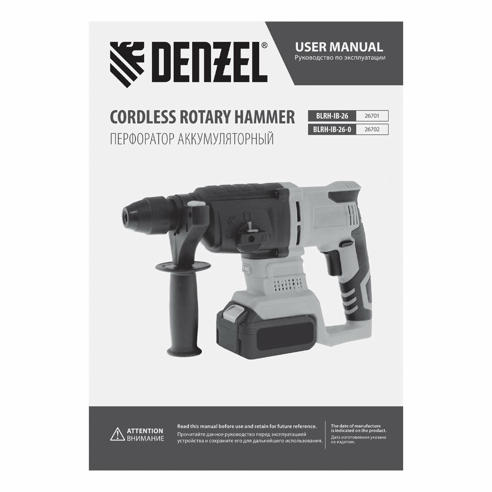 Cordless hammer drill 1 pc., Operation manual with warranty card 1 pc.
