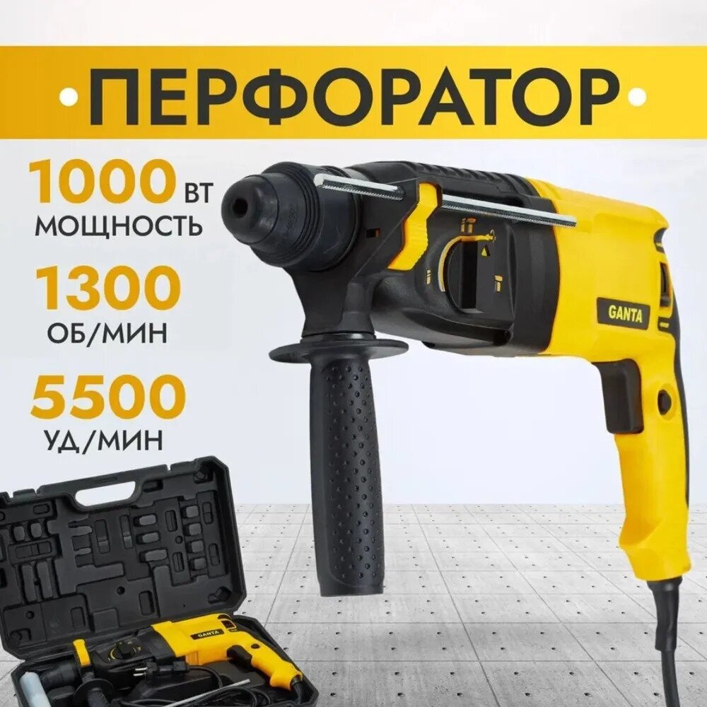 Rotary hammer, SDS drill - 5 pcs, drill - 3 pcs, sharp chisel - 1 pc, flat chisel - 1 pc, case - 1 pc, depth limiter - 1 pc, instruction manual, case