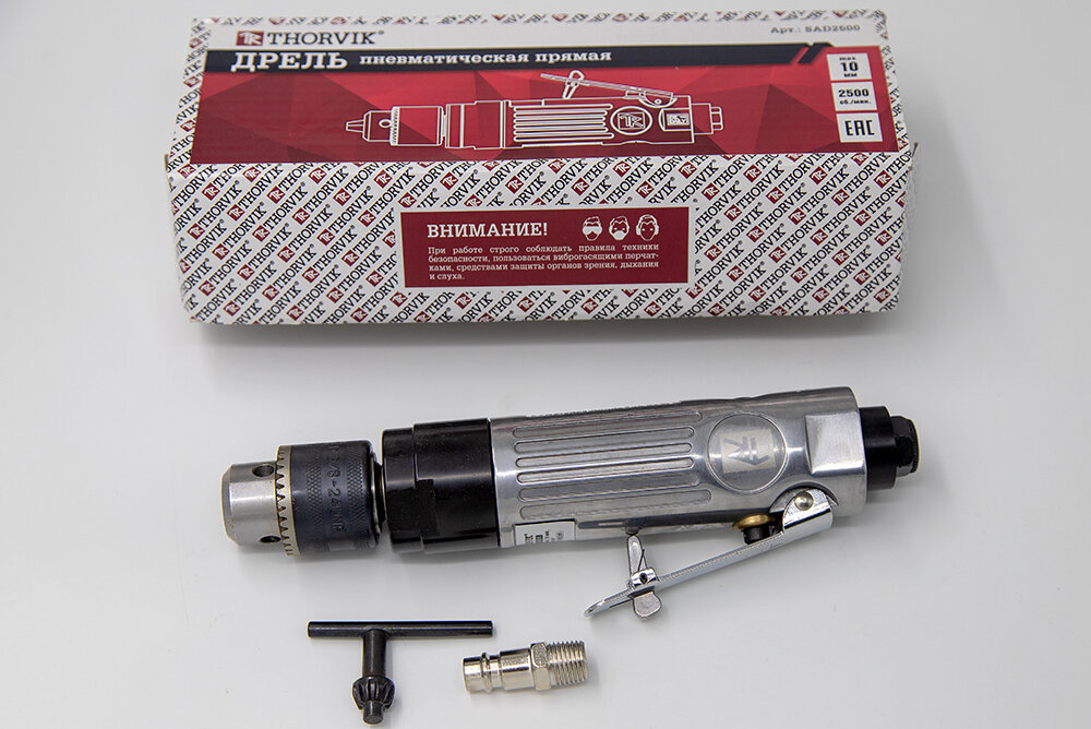 Straight pneumatic drill 2500 rpm, chuck 1-10 mm THORVIK SAD2500