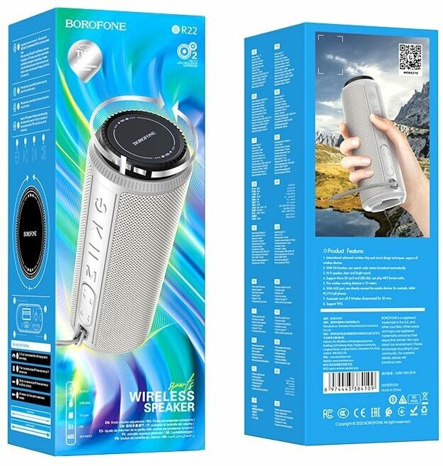 Portable speaker BT ver. 5.1 BOROFONE BR22, 2x5W, 1200mAh, 180x68x68 mm, gray 40