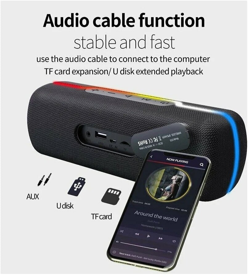 Type: stereo, total power: 6 W, wireless: Bluetooth, connectors and interfaces: USB Type-A for flash drive, audio input mini jack 3.5 mm