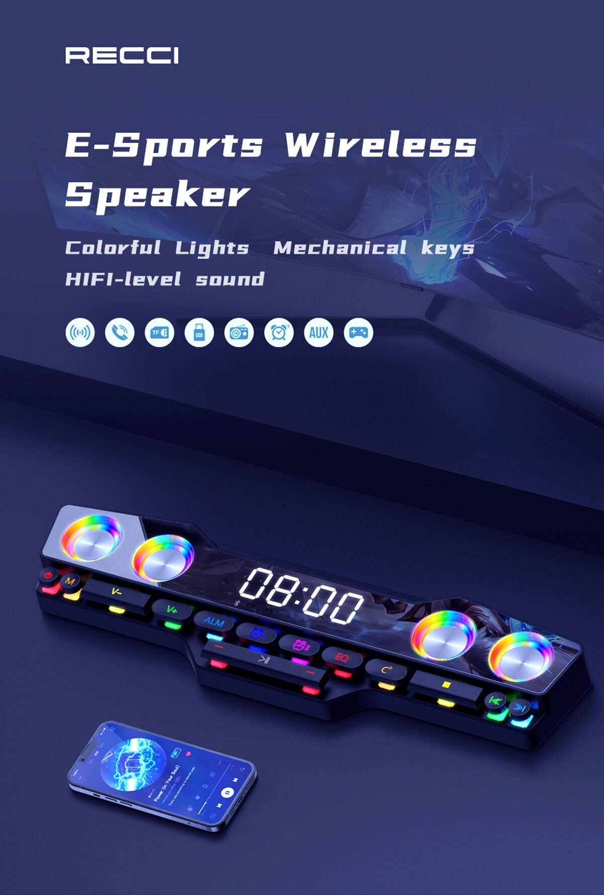 Wireless speaker Recci RY05 E-SPORTS Gaming Speaker, 2x 8 W, 4000mAh, black