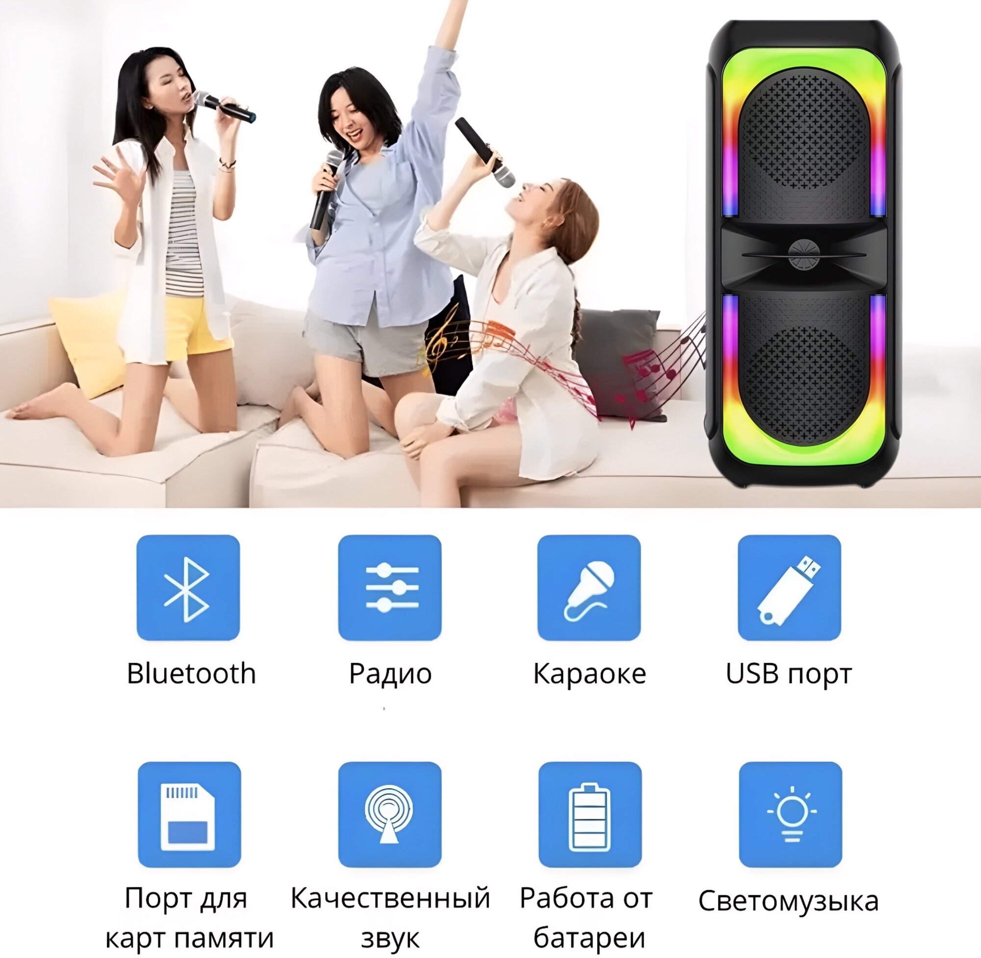 Type: stereo, total power: 8W, wireless: Bluetooth