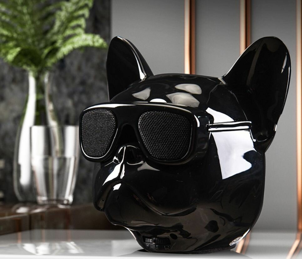 Wireless bluetooth French bulldog with glasses black