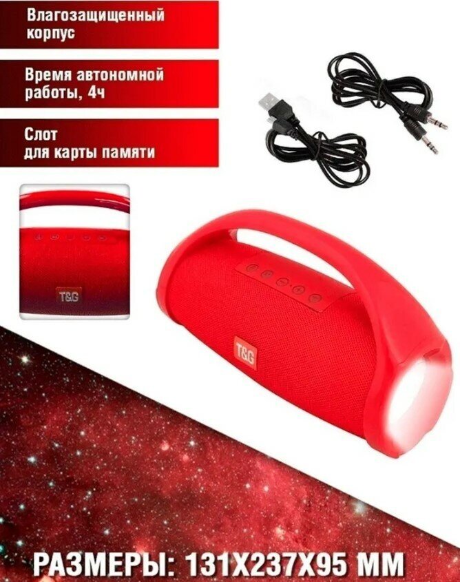 Type: 2.0, total power: 10 W, wireless connection: Bluetooth, connectors and interfaces: USB for connecting to a computer, USB Type-A for a flash drive, audio input mini jack 3.5 mm, audio output, headphone output, features: built-in flashlight