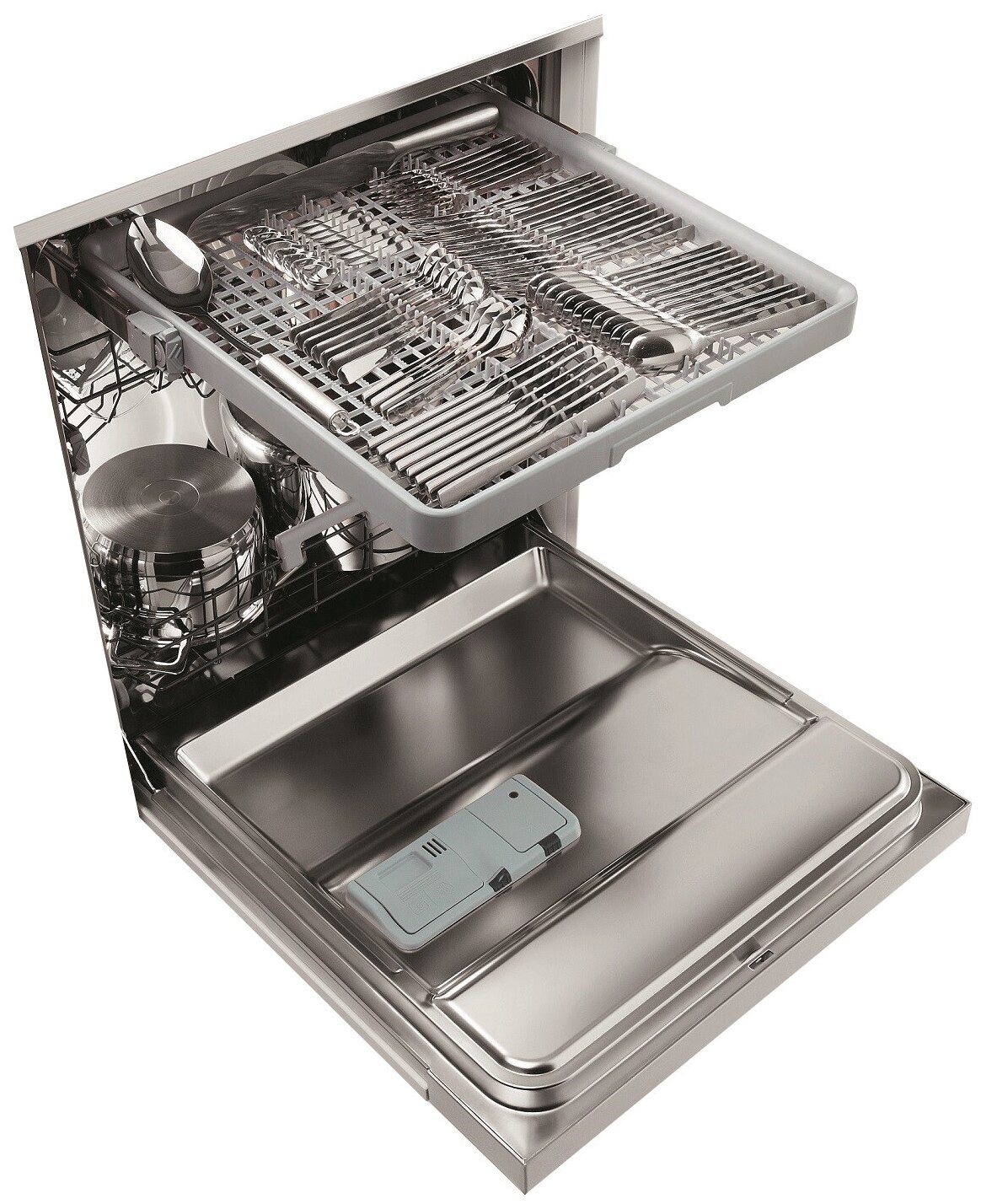 Stainless steel inner surface, display, 3 in 1 product usage, height-adjustable basket for dishes, water purity sensor, delay timer