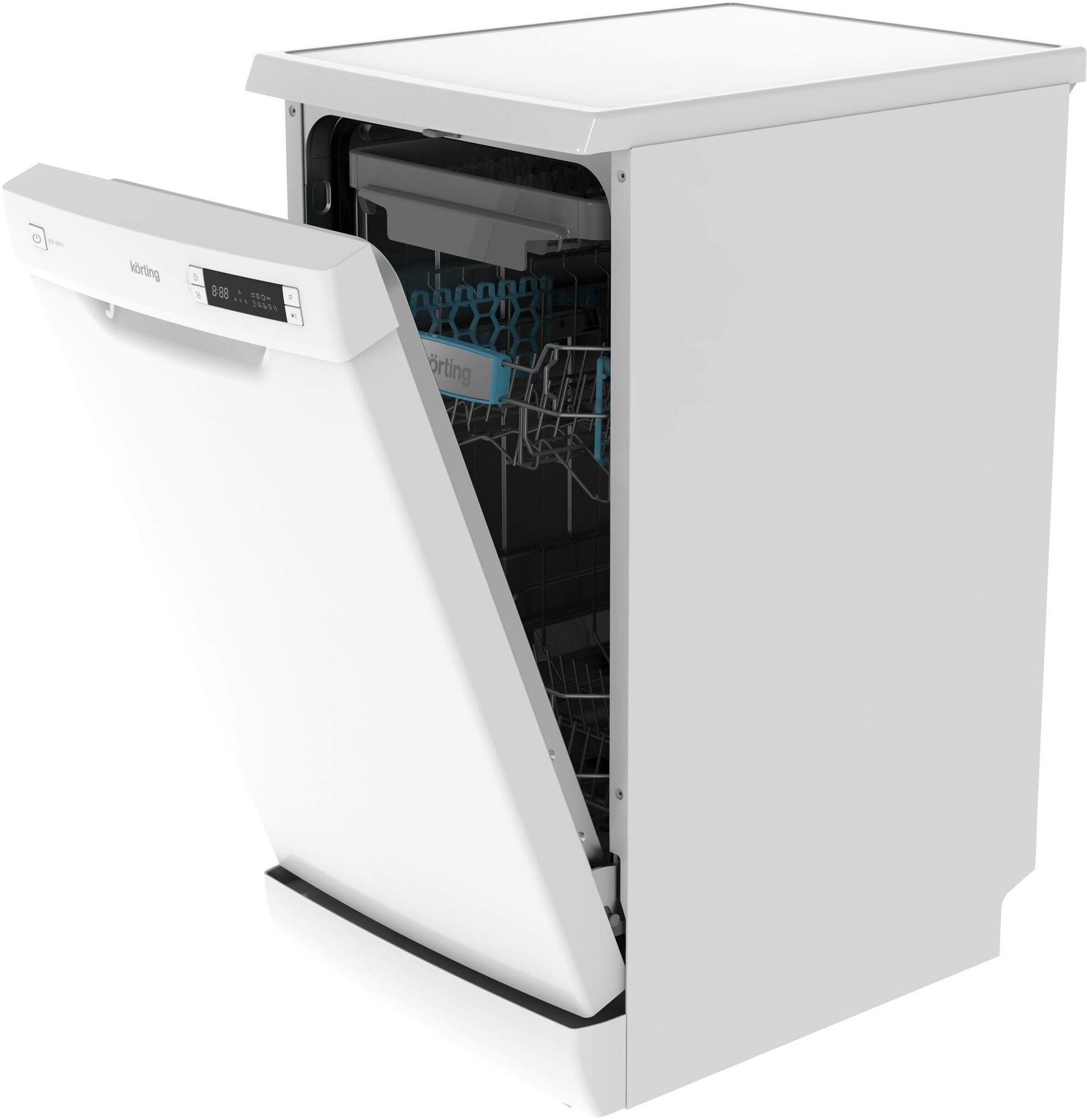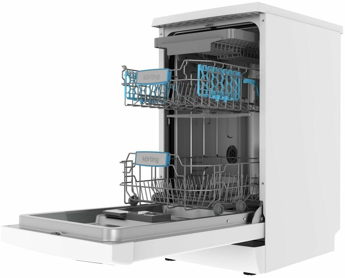 Installation type: free-standing, type: narrow, width: 44.80 cm, height: 84.50 cm, depth: 60 cm, safety: childproof, leakproof, operation indication: sound, drying type: intensive, capacity: 10 sets, rubs