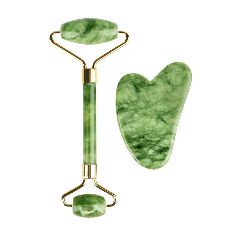 Gezatone Set Facial roller massager and Guasha crystal made of natural jade AMG331