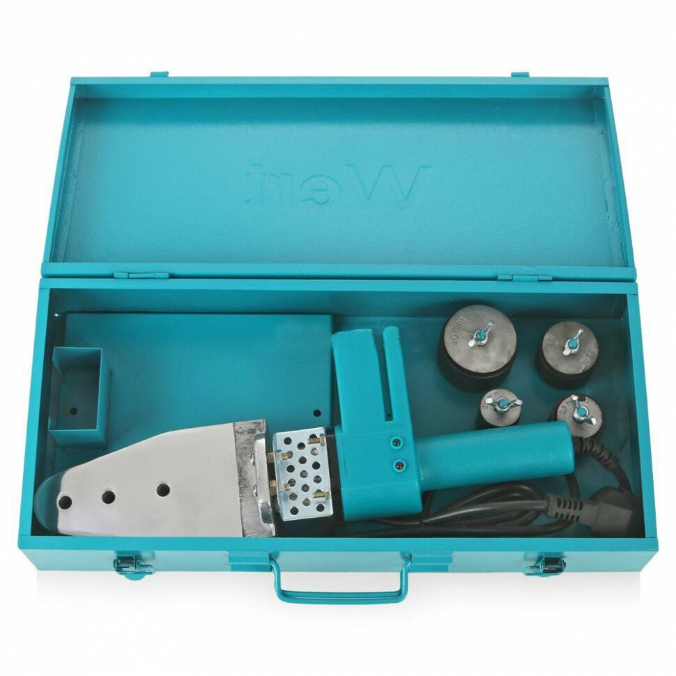 Pipe connection method: bell-shaped, heater shape: xiphoid, welding nozzle type: steam, power: 1600 W, temperature controller type: thermostat, maximum heating temperature: 300 °C, machine type: manual, input