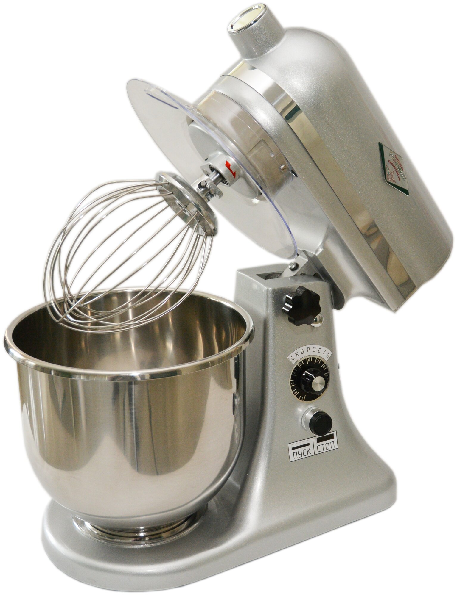 Type: planetary mixer, control type: mechanical, bowl/glass volume: 5 l, maximum rotation speed: 660 rpm, speed variator, maximum load: 1.30 kg, power: 370 W, height: 42 cm, width: 24 cm , depth: 42