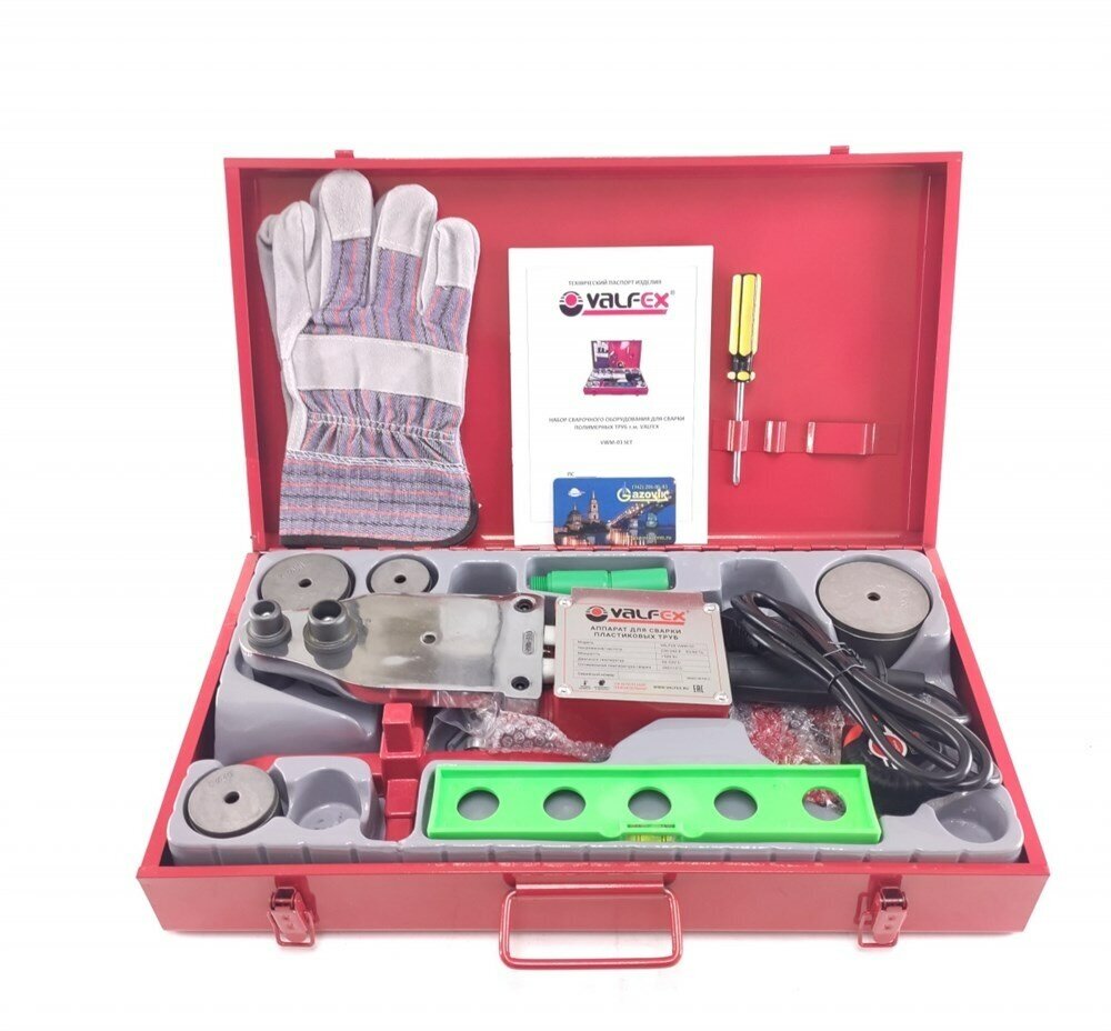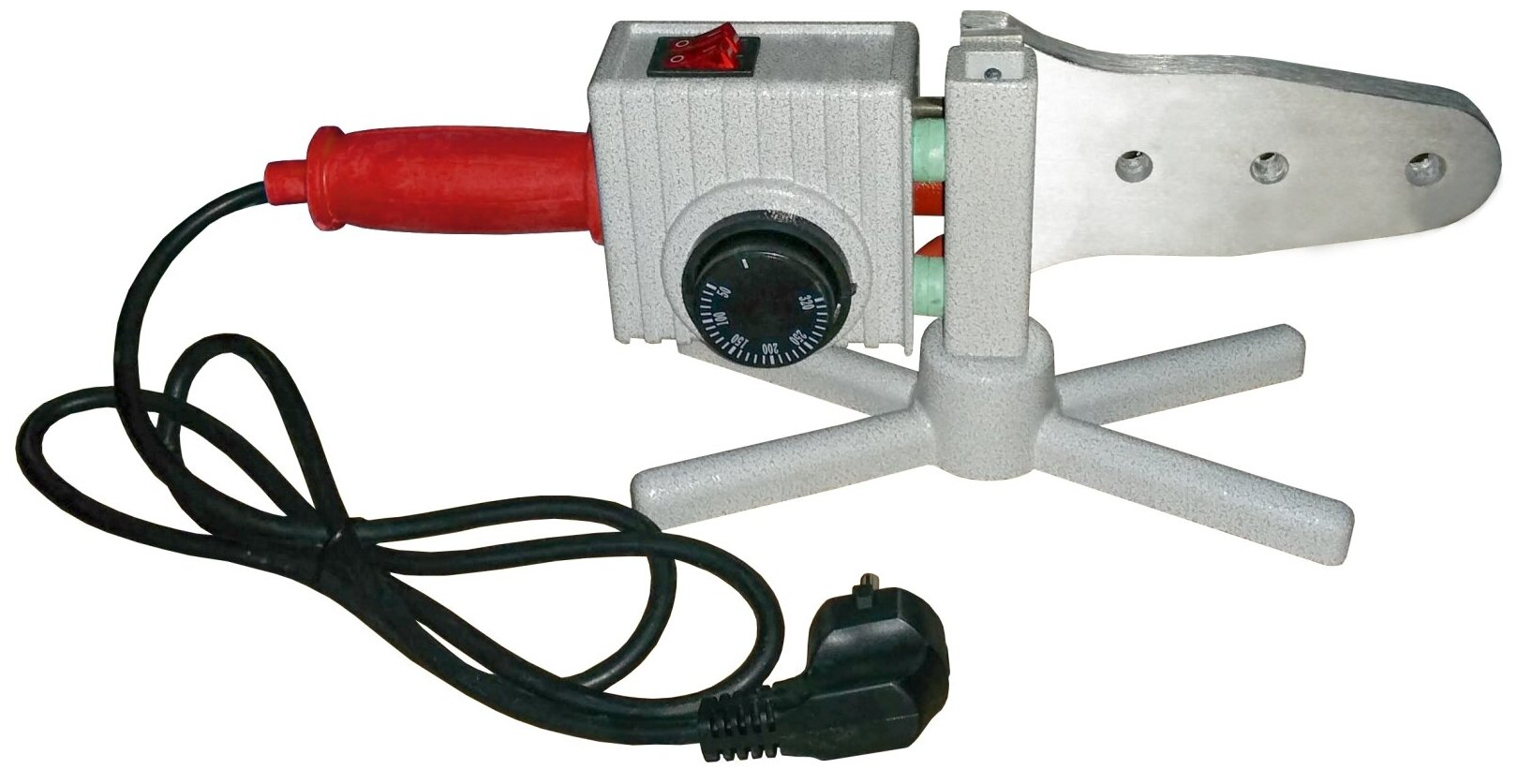 Method of pipe connection: bell-shaped, heater shape: xiphoid, type of welding nozzle: steam, power: 1500 W, type of temperature controller: thermostat, maximum heating temperature: 320 °C, type of apparatus: manual, if
