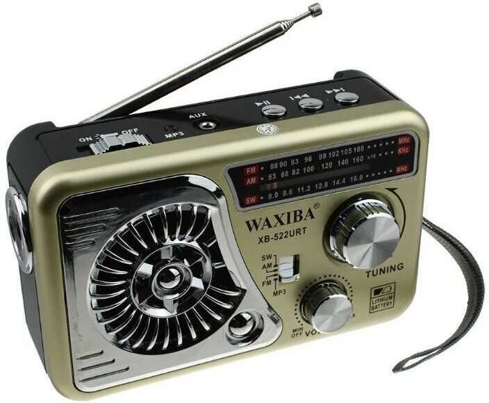 Waxiba XB-522URT battery 18650, microSD, USB, MP3, AUX, DC 5V, flashlight