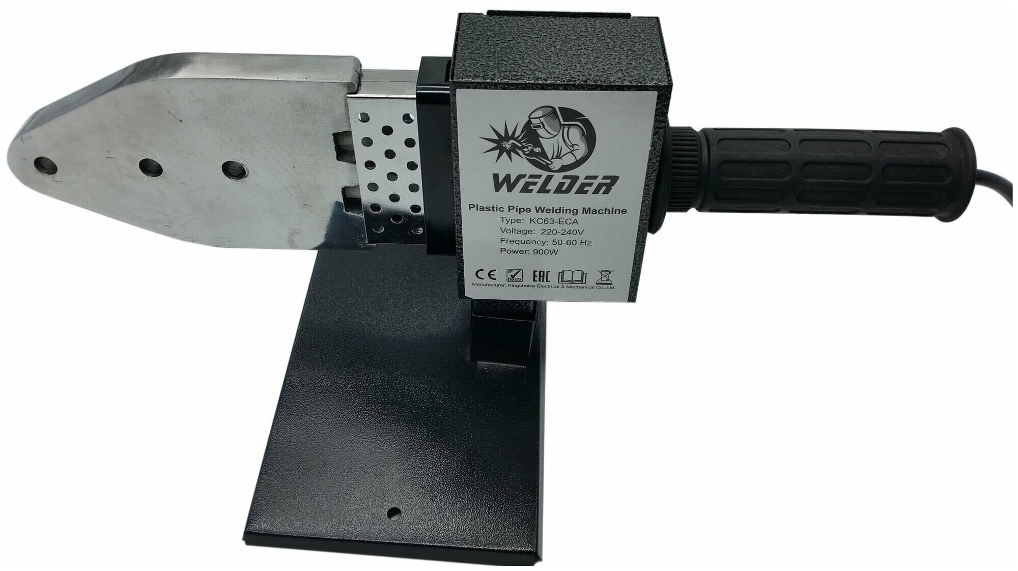 Method of pipe connection: bell-shaped, heater shape: xiphoid, type of welding nozzle: steam, power: 800 W, type of temperature controller: thermostat, maximum heating temperature: 300 °C, type of apparatus: manual, quantity