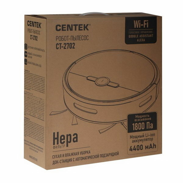 Line: CENTEK, type of cleaning: wet, dry, dust container volume: 0.60 l, battery life: 100 min, Smart Home Ecosystem: Smart Life, control from a smartphone, Ability to control from the remote control, installation on charge