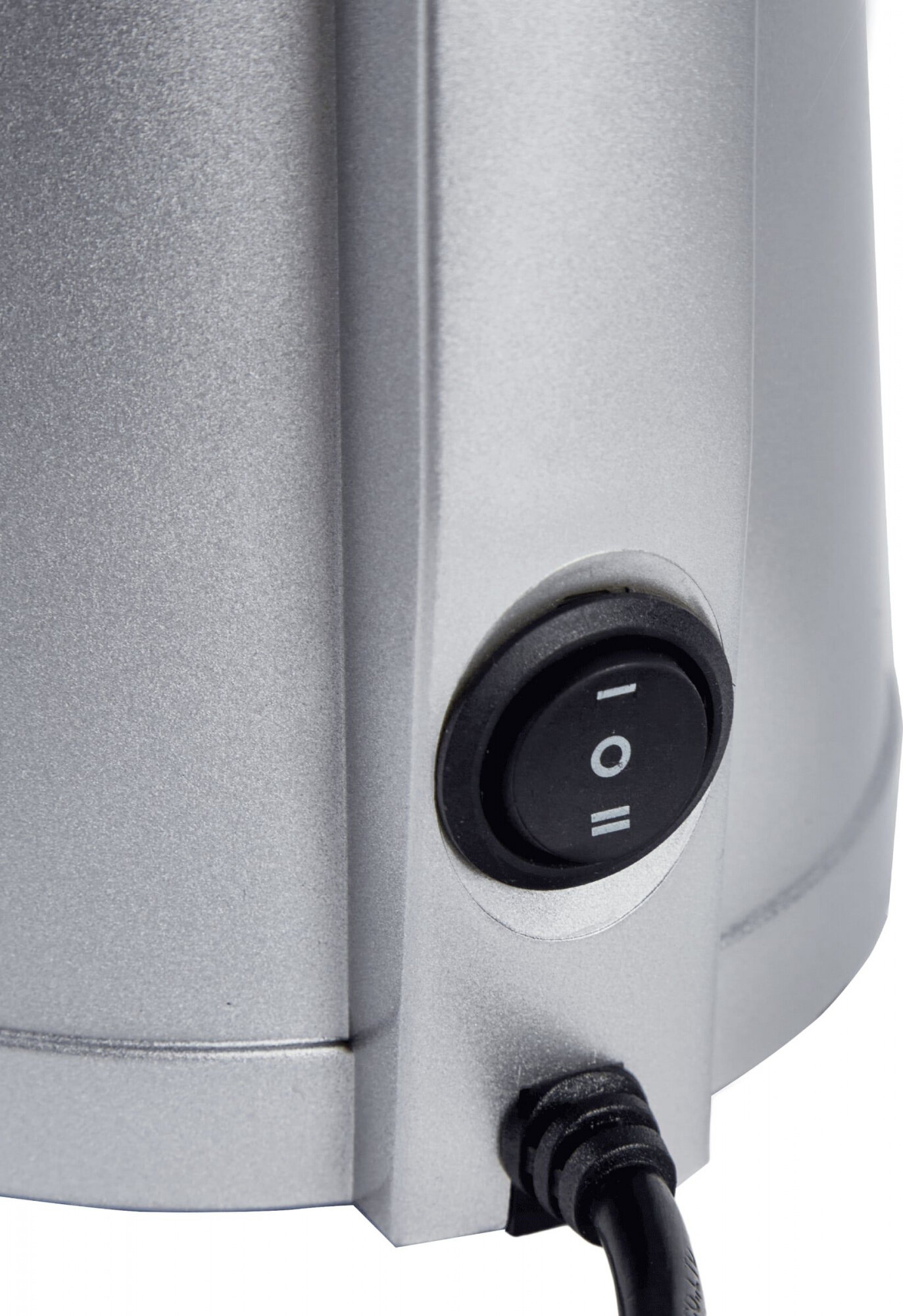 Type: centrifugal, power: 1200 W, mouth width: 85 mm, juice tank volume: 1 l, pulp tank volume: 2 l, number of speeds: 5, body material: stainless steel, features: automatic ejection