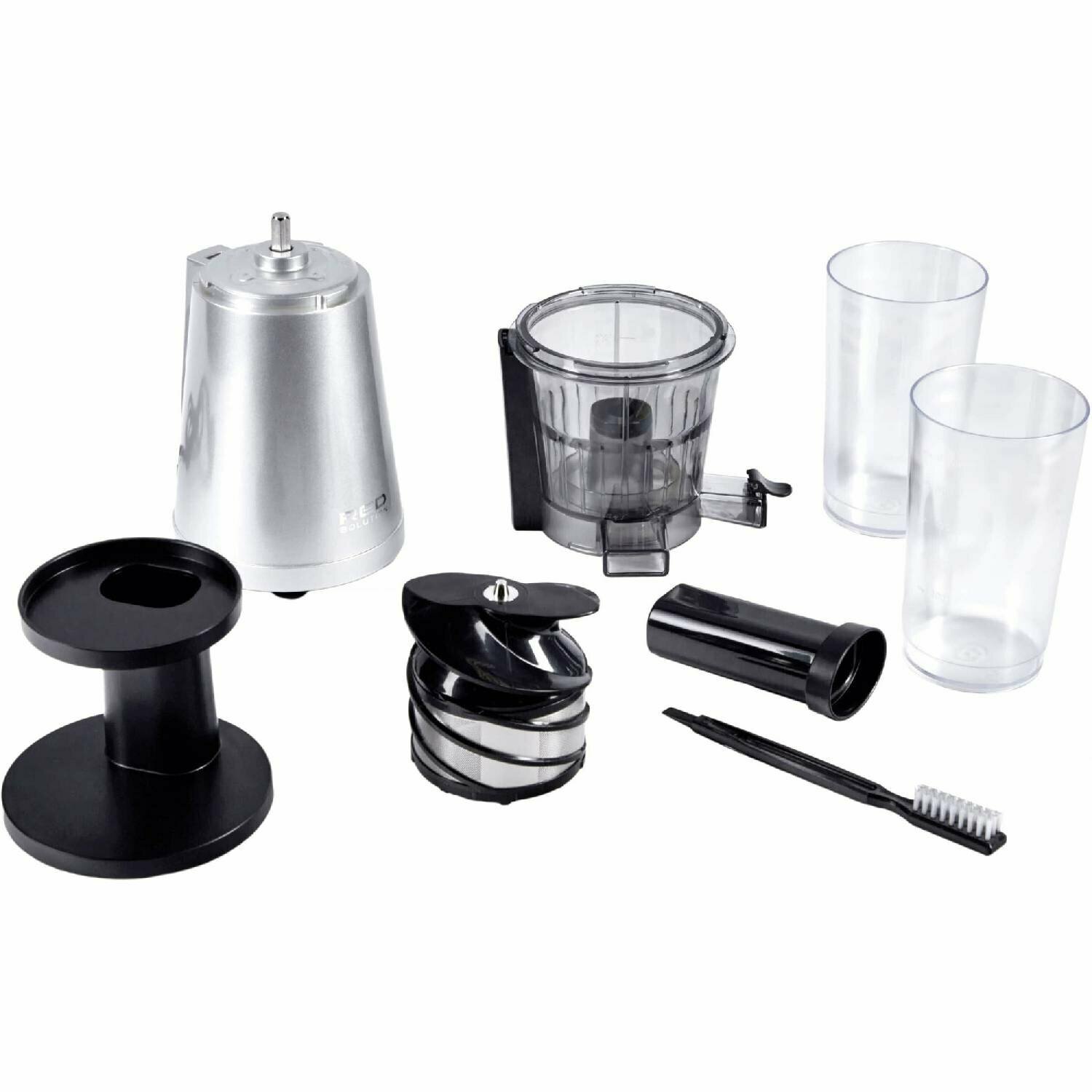 Juicer, cleaning brush, juice glass, pulp glass, instruction manual, service book, recipe book