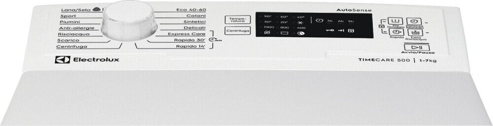 Loading type: vertical, maximum laundry load: 7–7.9 kg, installation: free-standing, depth: 59.90 cm, width: 39.70 cm, height: 89 cm, maximum spin speed: 900–1100 rpm, energy class : E, for