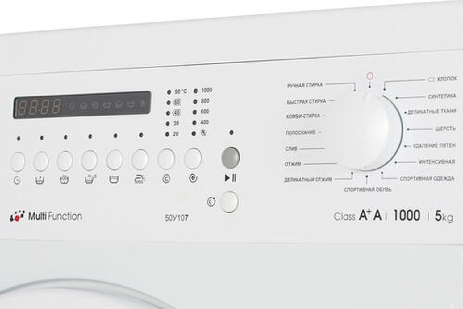 Spin speed selection, washing temperature selection, intelligent washing control, balance control, foam level control, delayed start, wash end signal