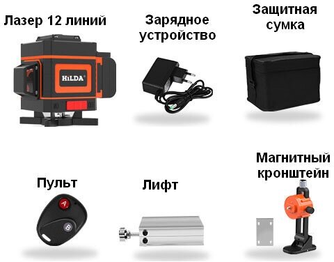 Beam color: green, type: laser, automatic leveling, number of beams: 12 pcs., laser level type: linear, building range without receiver: 30 m, functions: lower horizon, leveling off, distance