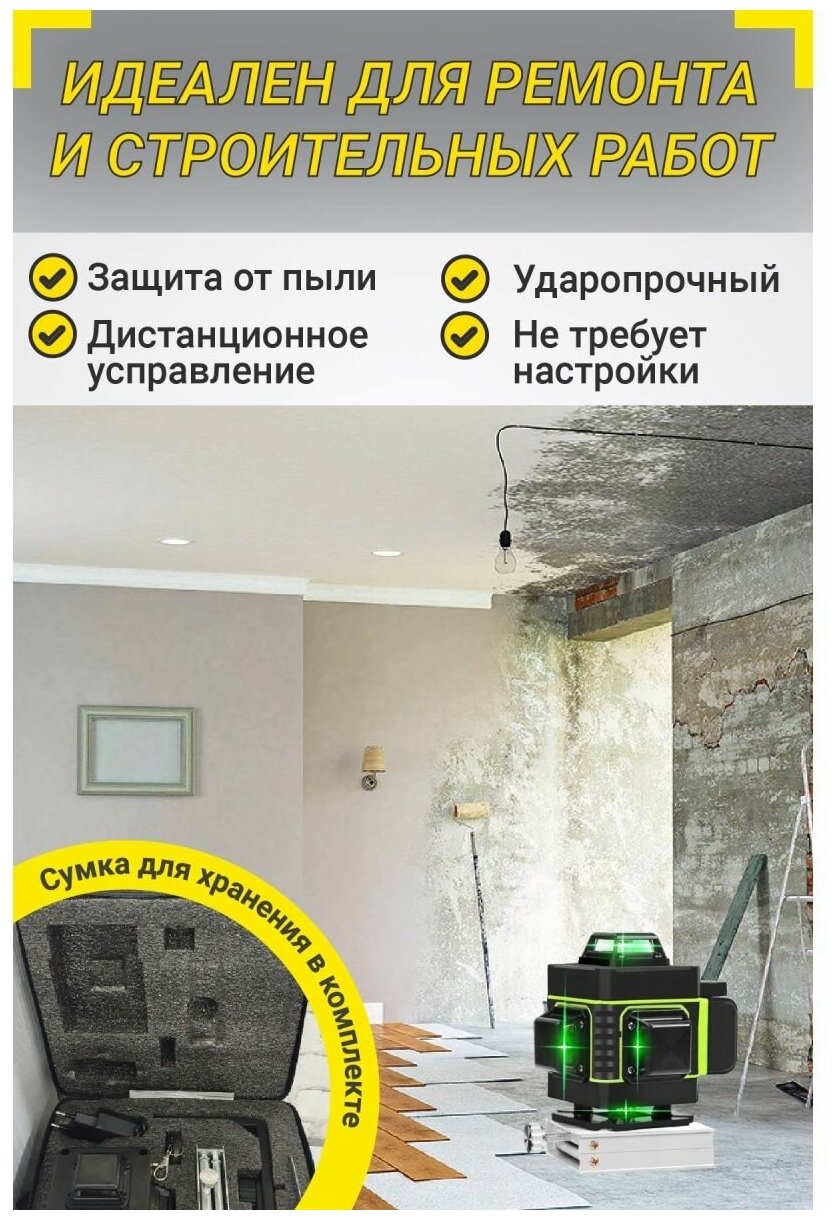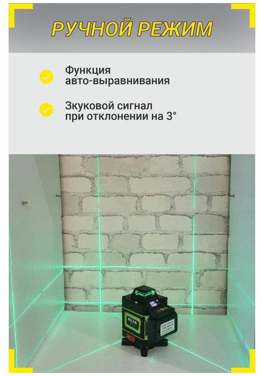 Beam color: green, type: laser, automatic leveling, number of beams: 16 pcs., laser level type: linear, range without receiver: 60 m, functions: plumb line, features: display, equipment: charge