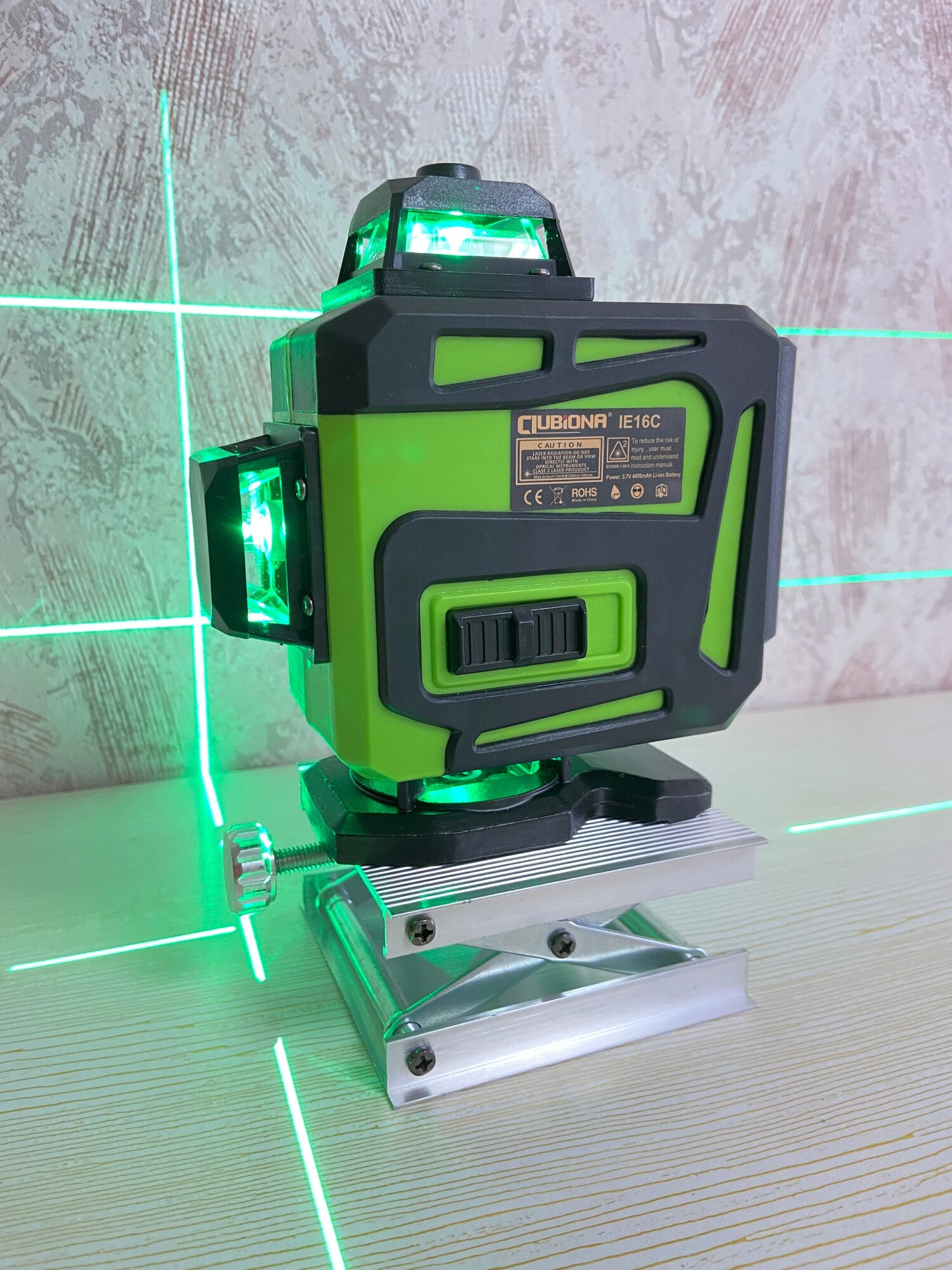 Beam color: green, type: laser, automatic leveling, number of beams: 16 pcs., laser level type: linear, building range without receiver: 25 m, functions: lower horizon, leveling off, special