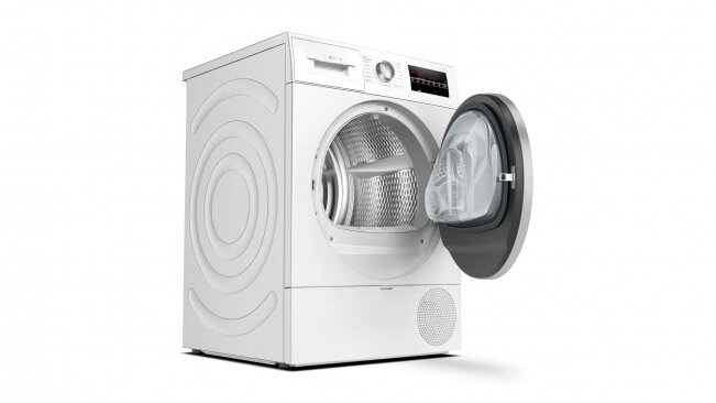 Type: tumble dryer, installation: in a column, freestanding, depth: 609 mm, width: 596 mm, loading type: front, drying type: condensing with heat pump, modes / functions: gentle drying, easy ironing, sound