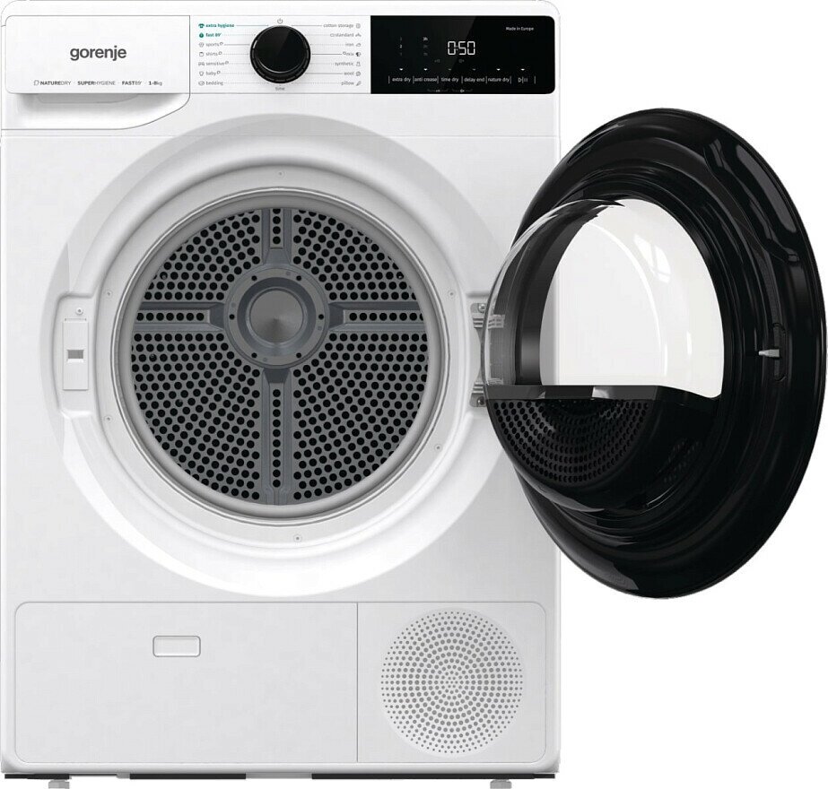 Display, drum illumination, 180° hatch opening, embossed drum surface, heat pump