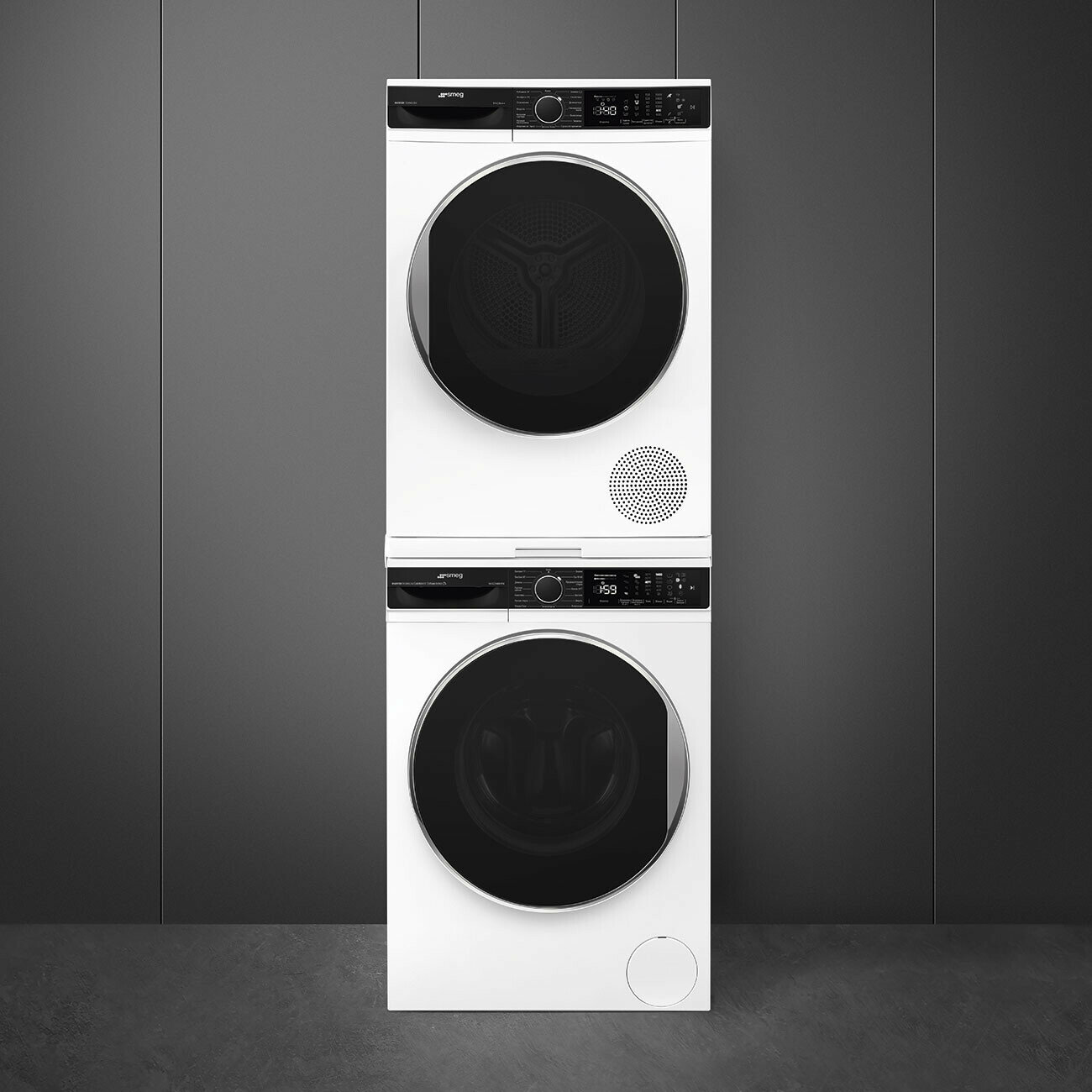 Type: tumble dryer, installation: in a column, freestanding, depth: 609 mm, width: 596 mm, loading type: front, drying type: condensing with heat pump, modes / functions: gentle drying, easy ironing, sound