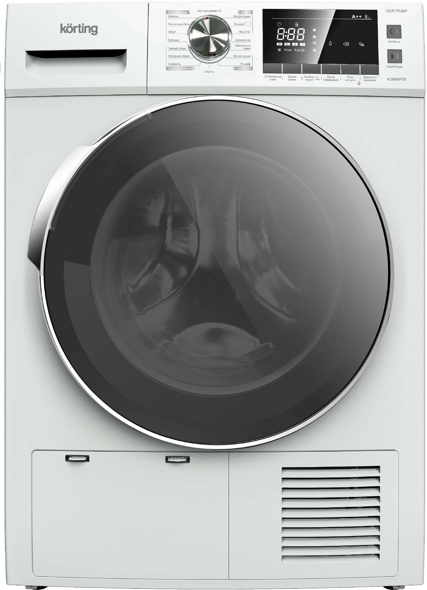 Type: tumble dryer, installation: in a column, freestanding, depth: 609 mm, width: 596 mm, loading type: front, drying type: condensing with heat pump, modes / functions: gentle drying, easy ironing, sound