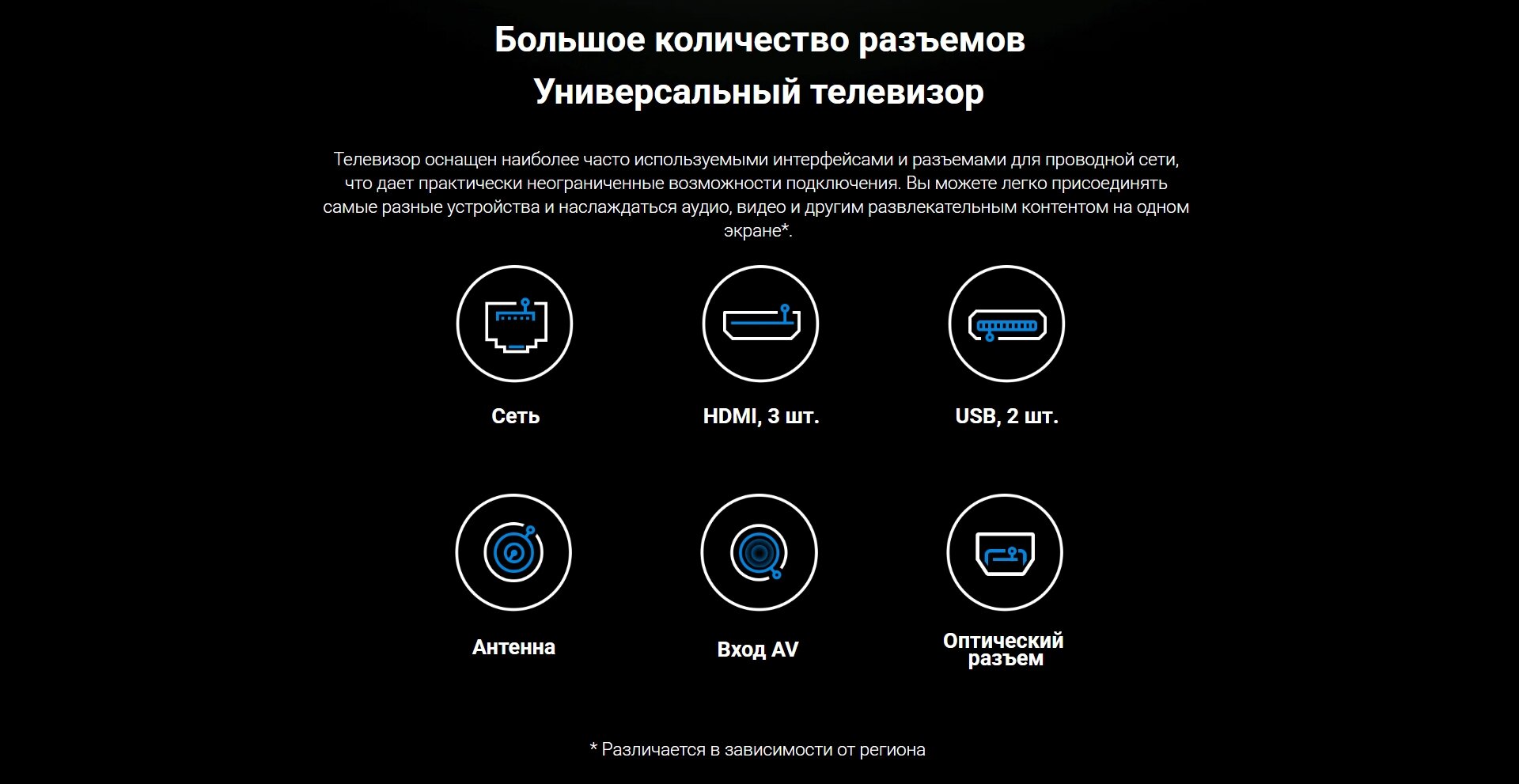 Ethernet - RJ-45, USB Type-A, USB Type-A x 2, HDMI input, HDMI input x 3, digital optical audio output, headphone output, composite video input, component video input, CI slot, CI slot x 2, 3.5 mm