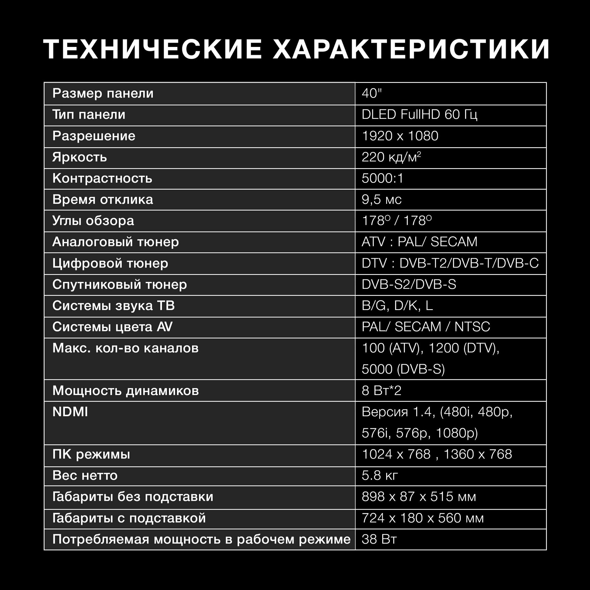 | Dimensions without stand WxHxD: |