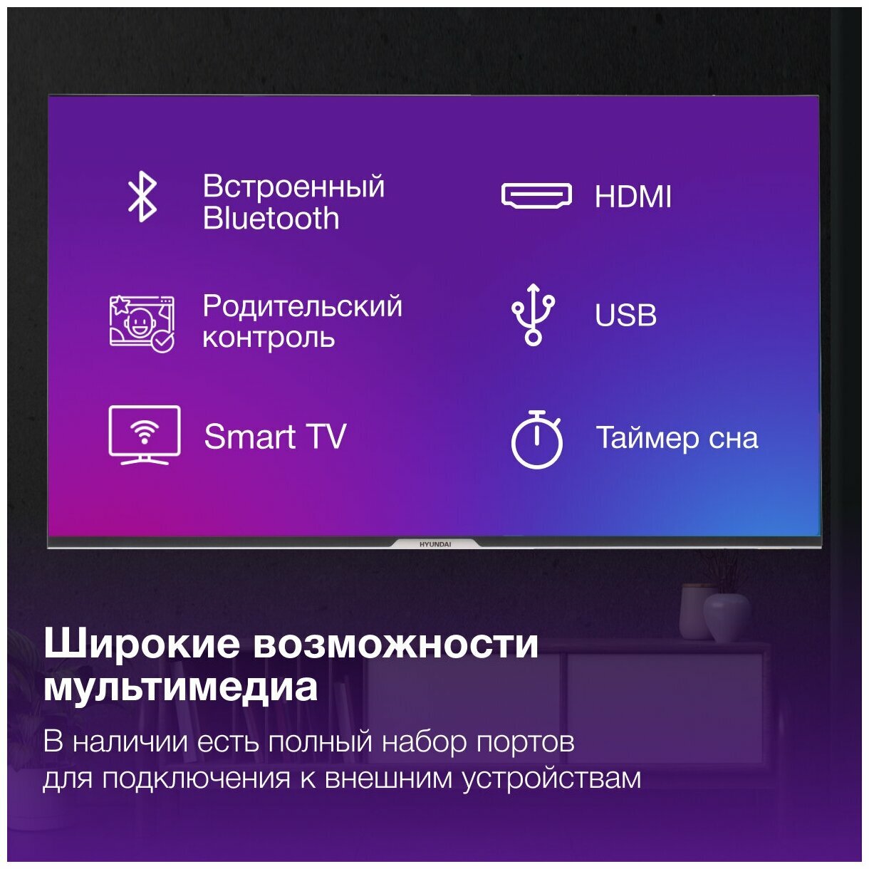 Additional Information: Multimedia USB connector, built-in Wi-Fi and Bluetooth, sleep timer, on/off timer, parental controls