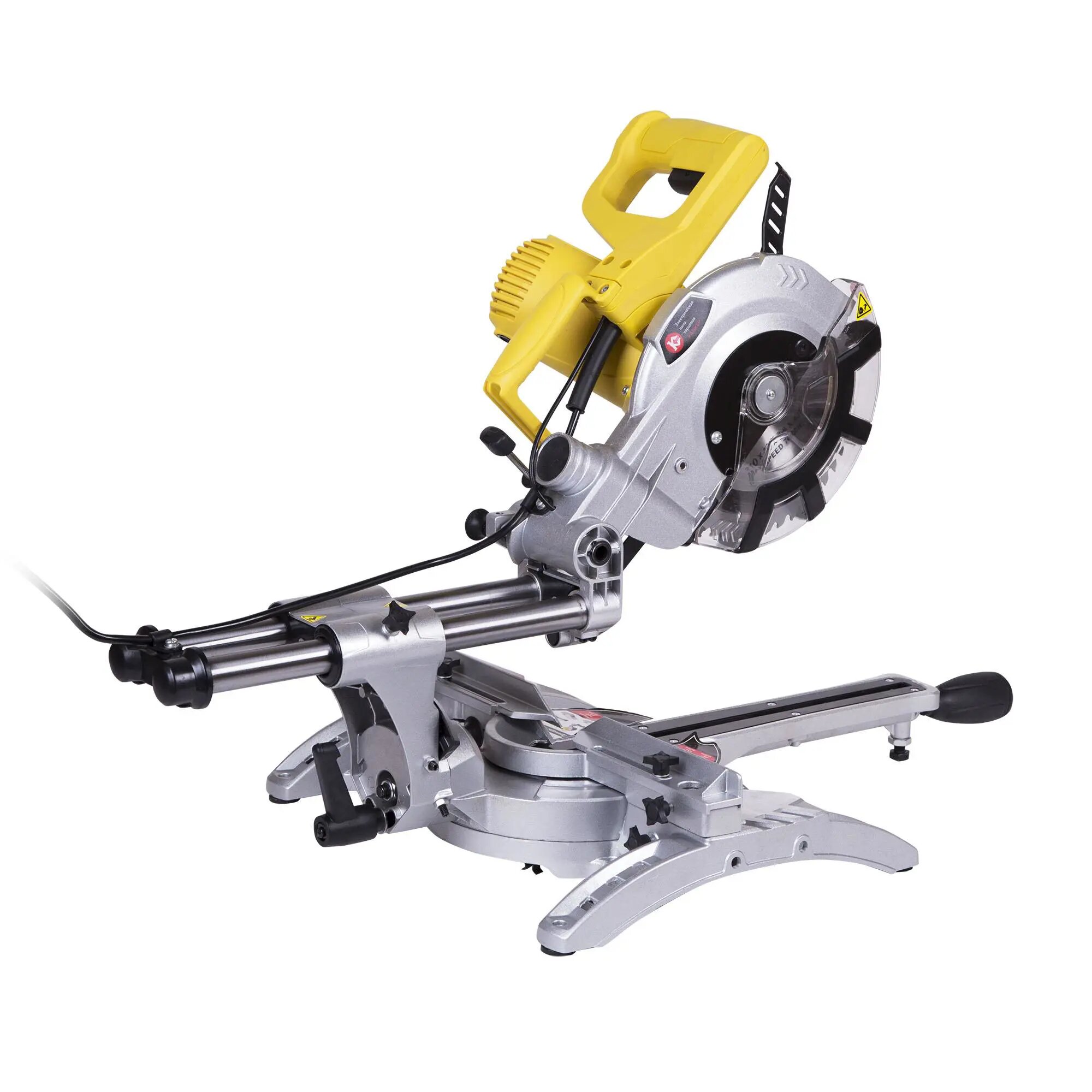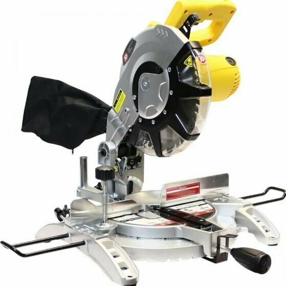 Electric miter saw; Wood saw blade; Vertical clamp clamp; Key; 2 graphite brushes; Dust collector; 2 additional supports; Manual; Package.