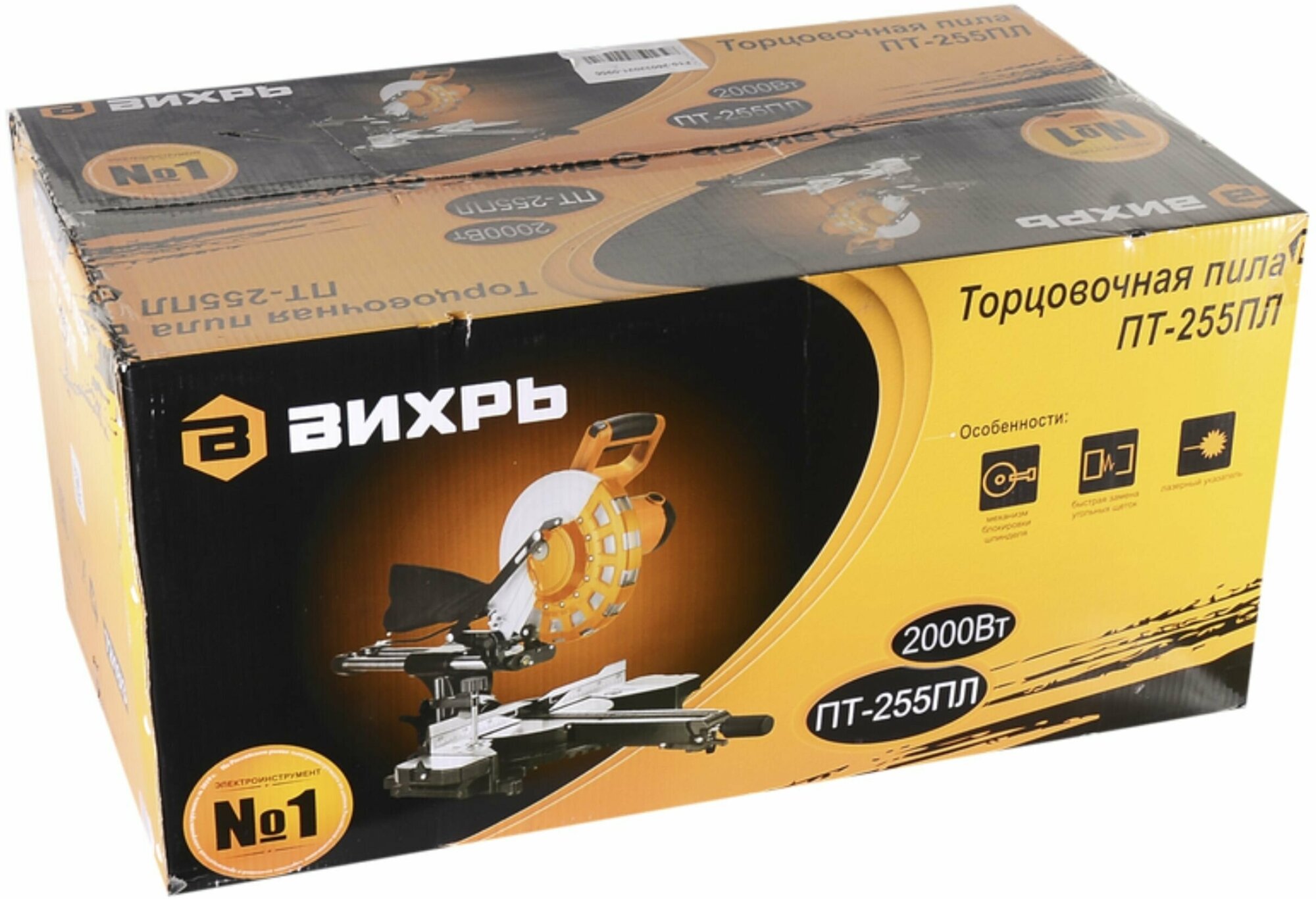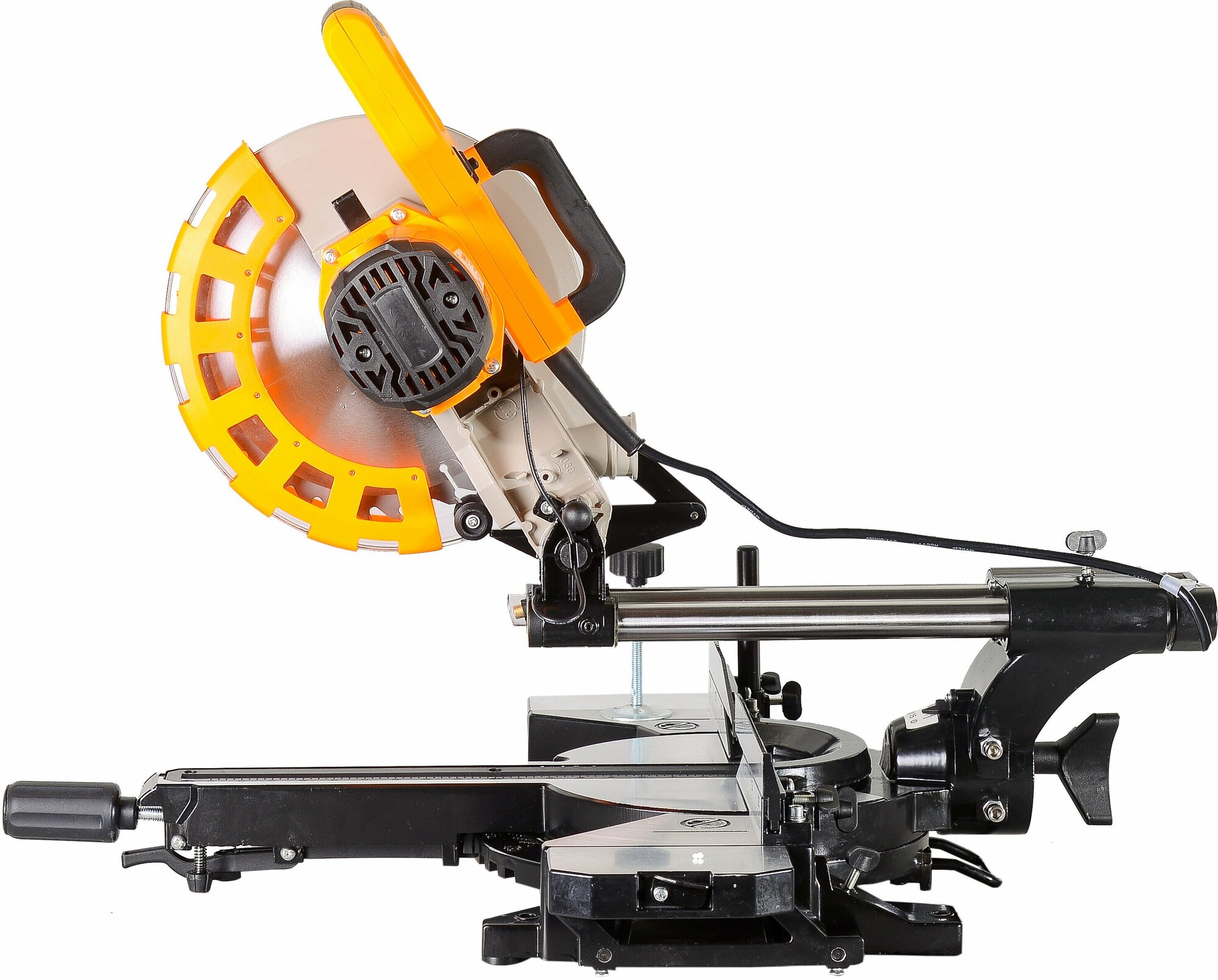 Miter saw, clamping device, side stop - 2 pcs., dust bag, keys - 2 pcs., passport, packaging