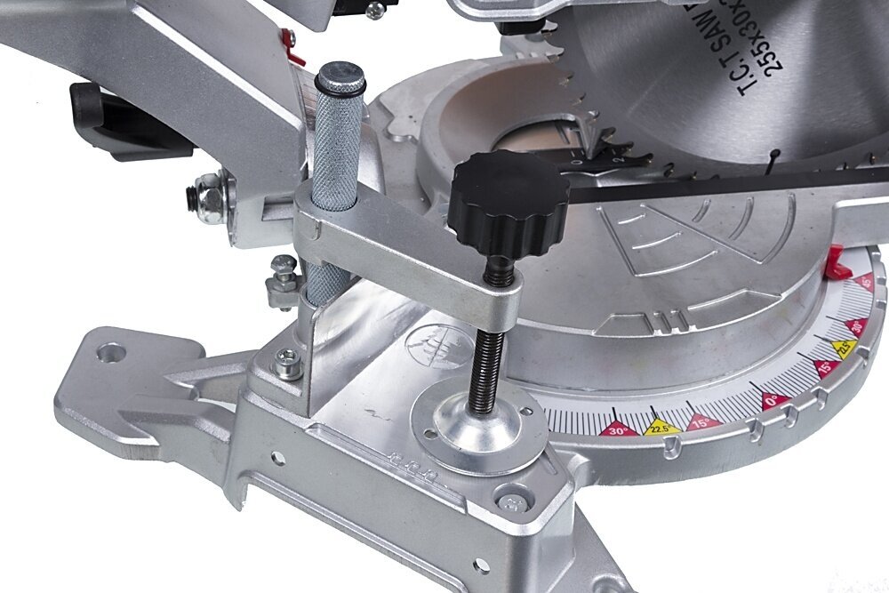 Type: cross-cut, laser marker, blade diameter: 255 mm, Power W: 2000, cutting depth 90°: 80 mm, cutting width 90°: 340 mm, with broach, power supply: mains, functions: cutting depth adjustment, bevel cut /cut, adjust