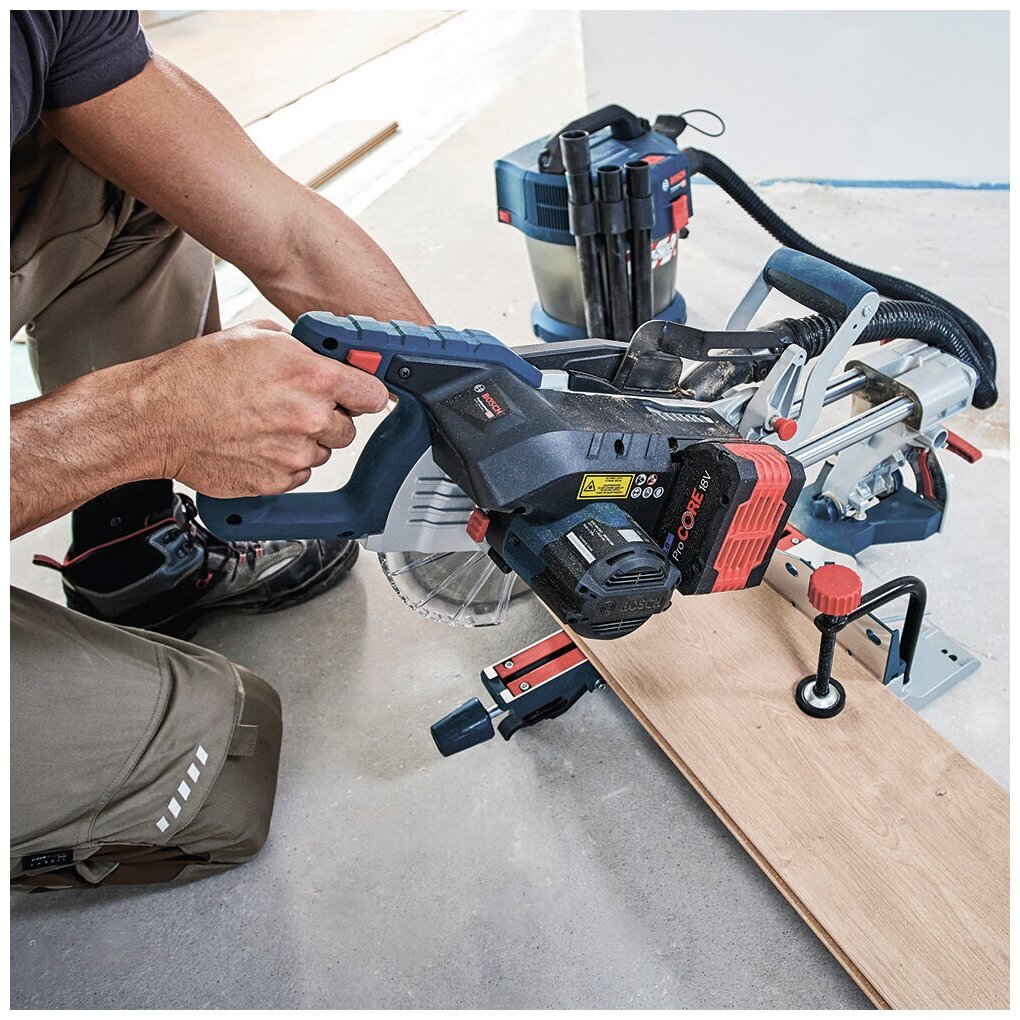 Saw BOSCH GCM 18V-216, saw blade, dust collector, saw blade clamp SDS, insert plate