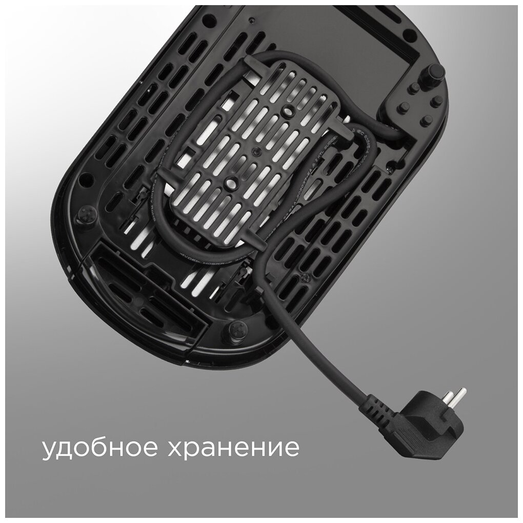 Cord compartment, thermally insulated housing, defrosting, temperature adjustment, heating function