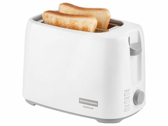 Number of toasts: 2, number of compartments: 2, set includes: crumb tray, case material: plastic, control type: mechanical, additional modes: heating function, defrost function, power: 750 W, high
