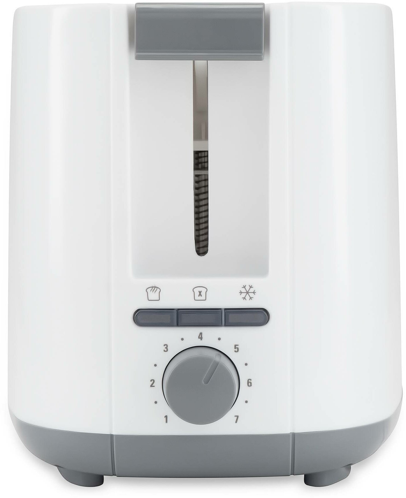 Number of toasts: 2, number of compartments: 2, set includes: crumb tray, case material: plastic, control type: mechanical, power: 700 W, features: thermally insulated case, additional functions: button