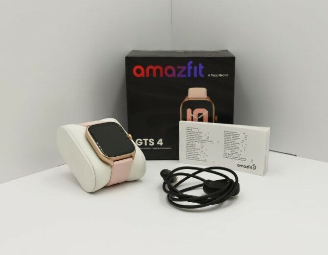 Package contents: smart watch including standard strap, magnetic charging stand, instruction manual