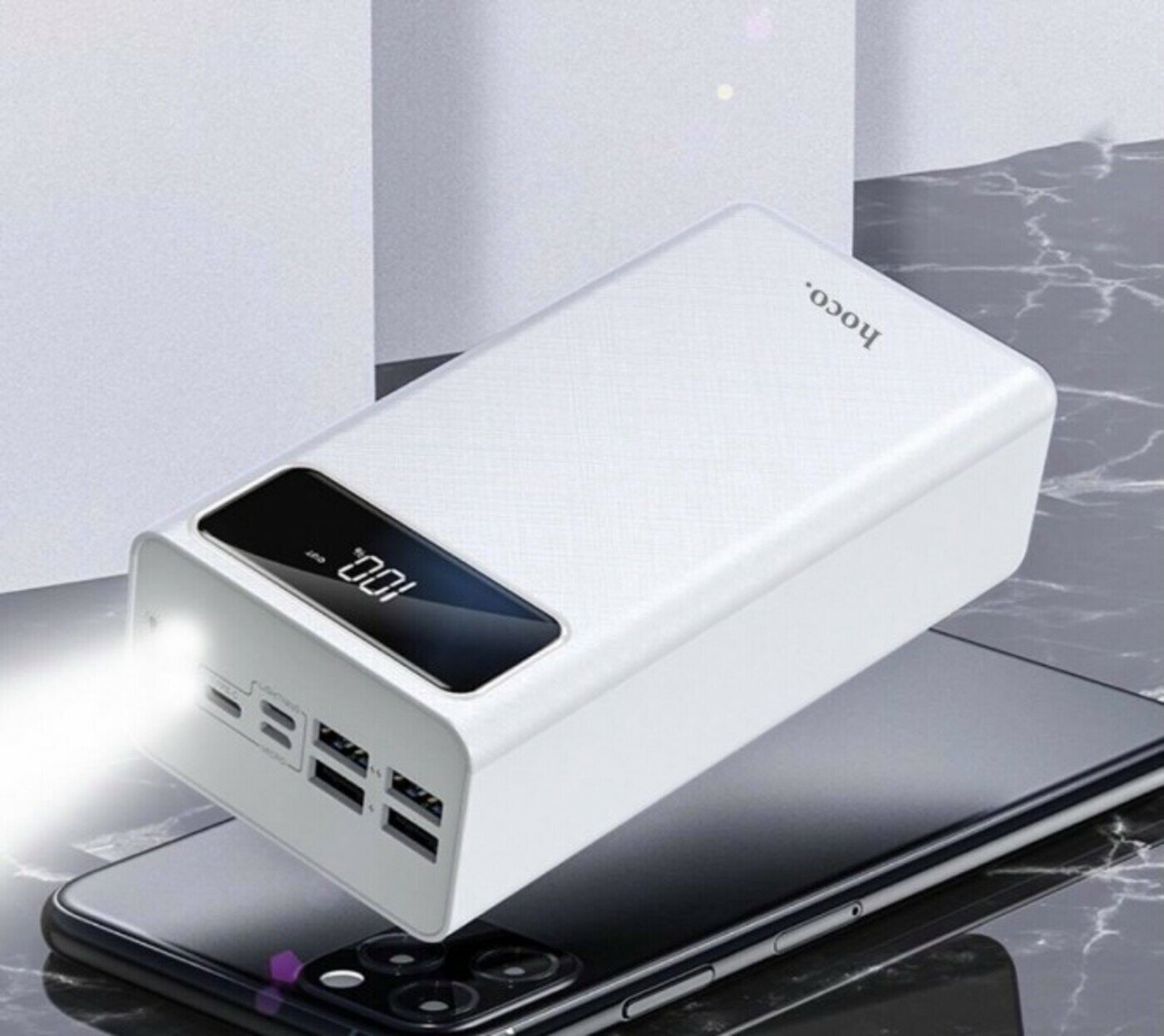 Dual device charging, charge indicator, flashlight, Quick Charge, Display, Laptop charging