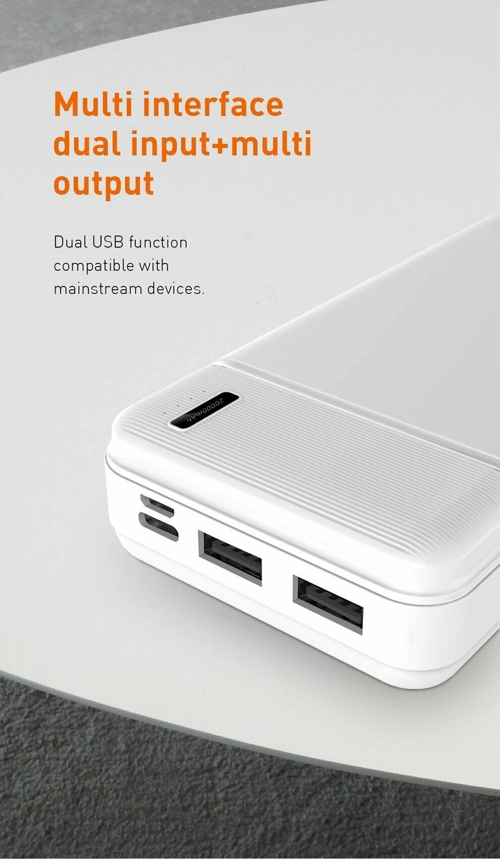 Capacity: 20000 mAh, compatibility: For video camera, For gamepad, For mobile phone, For portable speakers, For camera, For e-book, Universal, max. output current: 2.10 A, features: indicator for
