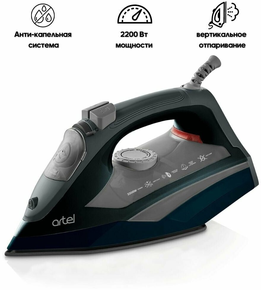 Sole material: ceramic, power: 2200 W, additional functions: steam boost, constant steam supply, self-cleaning system, dry ironing, spray function, vertical steaming, special features: ball fastening