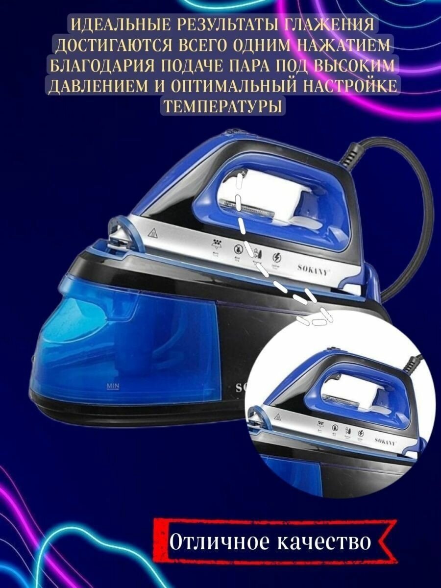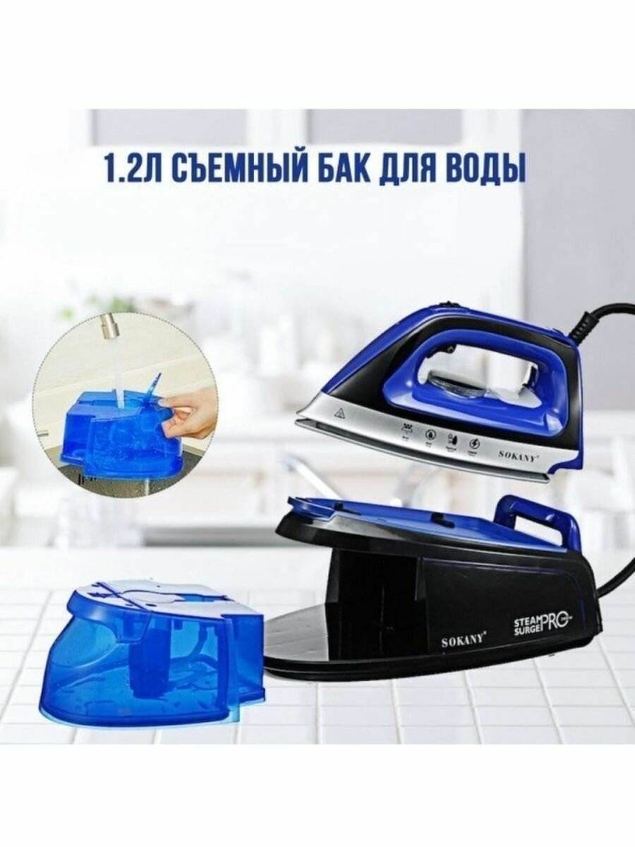 Sole material: ceramic, power: 2200 W, additional functions: steam boost, constant steam supply, self-cleaning system, dry ironing, spray function, vertical steaming, special features: ball fastening