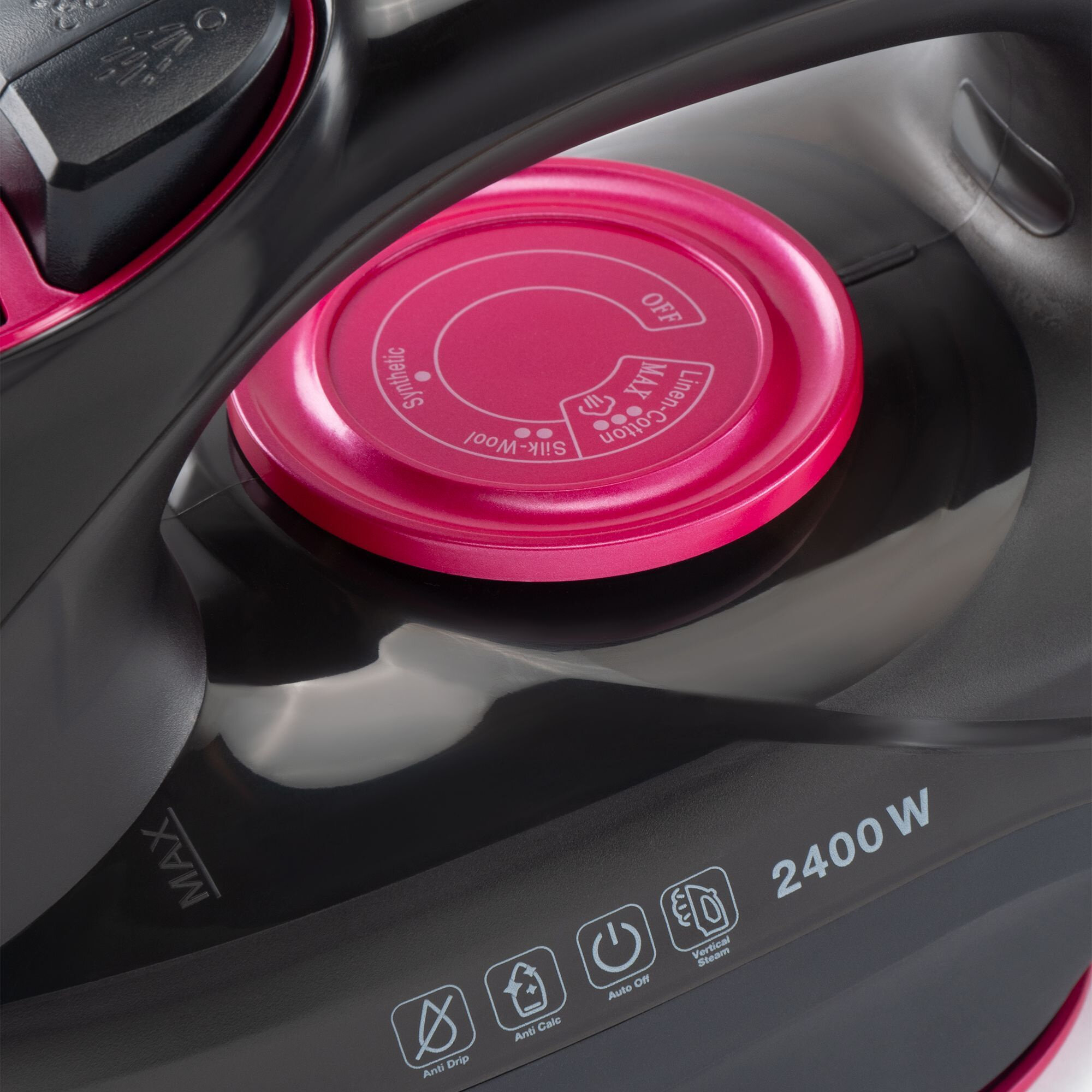 Sole material: ceramics, power: 2400 W, automatic shut-off, vertical steaming, features: Vertical steaming, Anti-drip system, Water sprayer, power cord length: 2 m, volume p