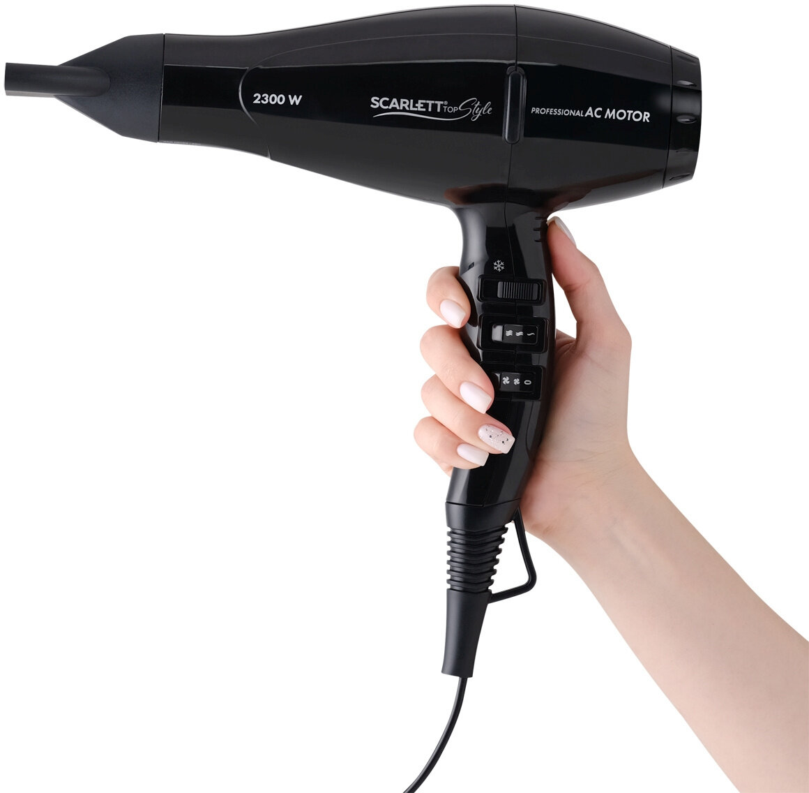 Hair dryer, concentrator nozzle, instructions, warranty card