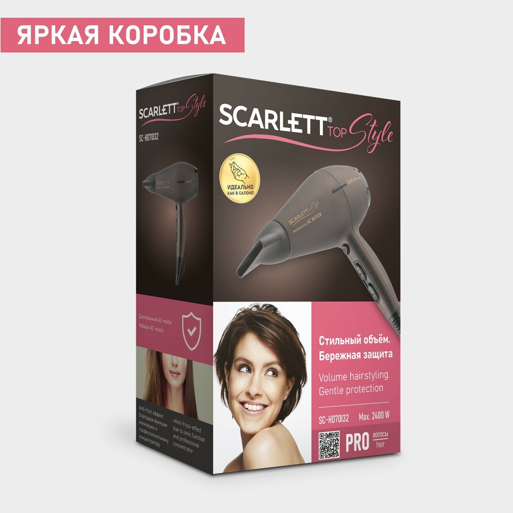 Type: hair dryer, hair dryer power: 2200 W, additional functions: ionization, independent adjustment of heating and air flow, cold air supply, attachments: diffuser, concentrator, number of heating modes: 3, quantity